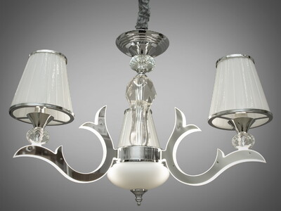 Класична люстра з ріжками, що світяться 15W та скляними білими плафонами, хром