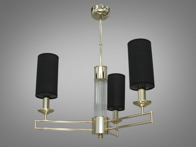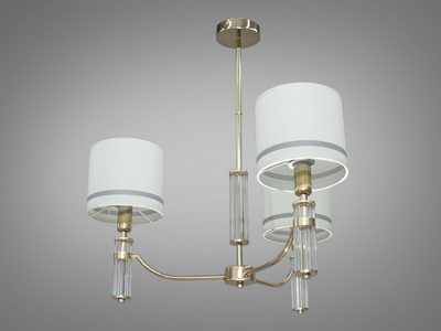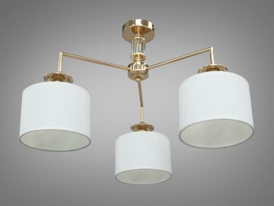 Класична люстра з абажурами із тканини, 3 лампи, золото