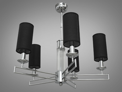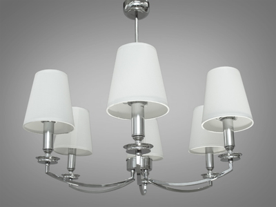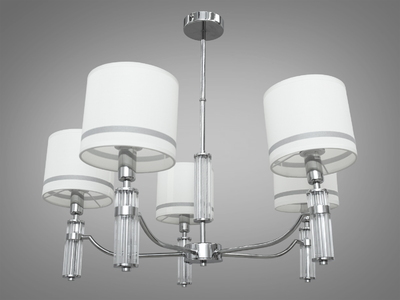 Класична підвісна люстра з тканинними абажурами на 5 рожків, хром