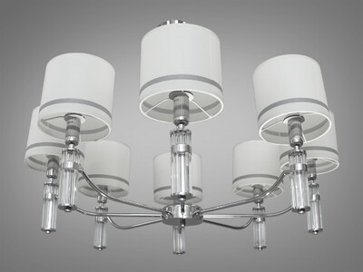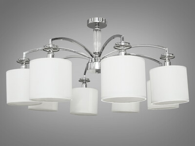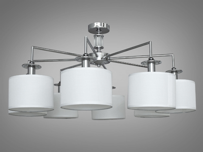 Заворожуюча люстра з абажурами із тканини на 8 рожків, хром