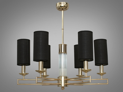 Класична люстра з абажурами текстильними, 6 абажурів, золото