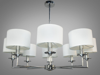 Велика люстра з абажурами із тканини на 8 рожків, хром