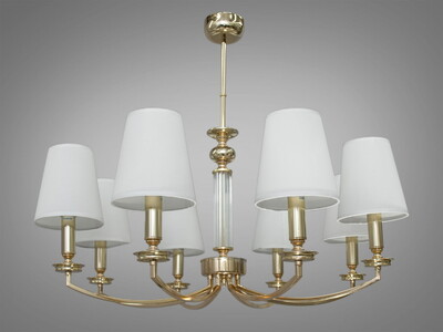 Велика класична люстра з абажурами із текстилю, 8 ламп, золото
