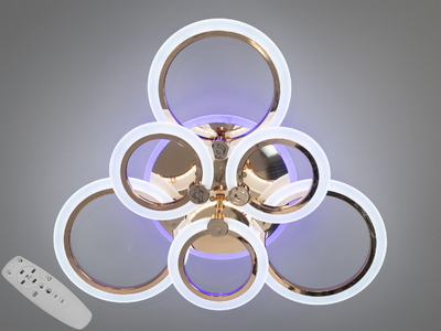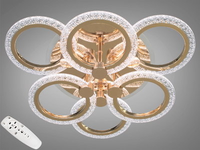 Стельова LED люстра 8022 золото 6 кілець 82 Вт