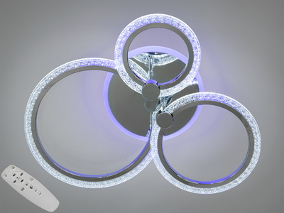 Люстра LED стельова Серія 8022 хром з пультом диммером і кольоровою підсвіткою 55W