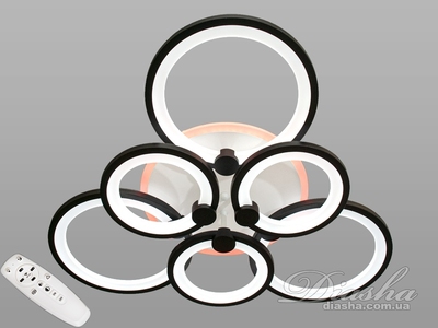 Стельова LED люстра 8022 чорна 6 кілець 82Вт