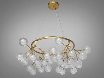 Захоплююча люстра підвіс "Світлячок", 54 лампи, золото сатин