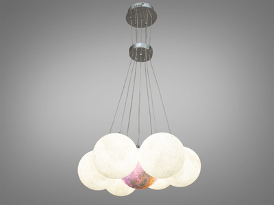 Дизайнерська підвісна люстра Планети хром 7 ламп акрилові кулі