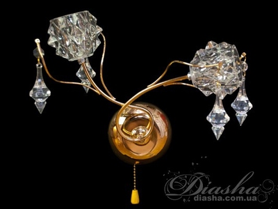 Красивий настінний кришталевий LED світильник, 6W, золото