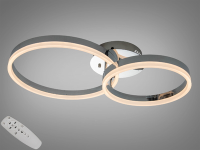 Стельова LED люстра кільця хром 50 Вт димер пульт 2750 лм