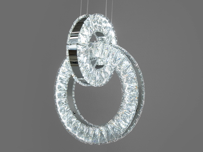 Шикарна кришталева світлодіодна люстра кільця на тросах, 65Вт, хром