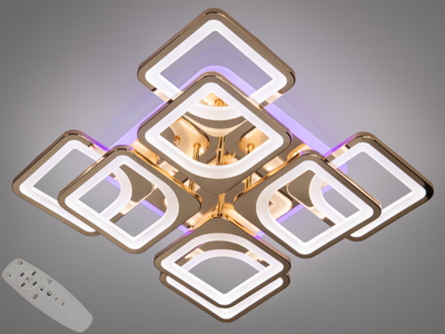 Сучасна стельова світлодіодна люстра з пультом, 105 Вт, золото