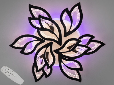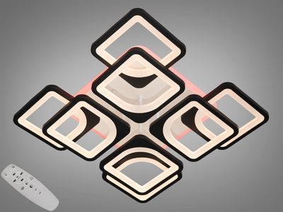 Стельова люстра з пультом, диммером і LED підсвічуванням, 140W, чорна