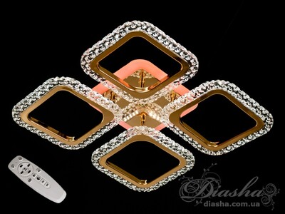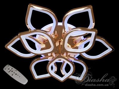 Сучасна світлодіодна люстра з пультом та димером, 150W, золото
