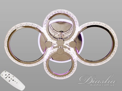 Стельова люстра з пультом, диммером, підсвічуванням, 75W, хром