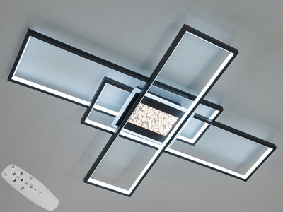 Сучасна стельова світлодіодна люстра з пультом, 125 Вт, чорна