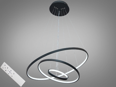 Сучасна LED люстра підвіс з диммером 100 Вт, три кільця, колір-чорний