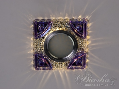 Врізний світильник з фіолетовими кристалами, тепле світло